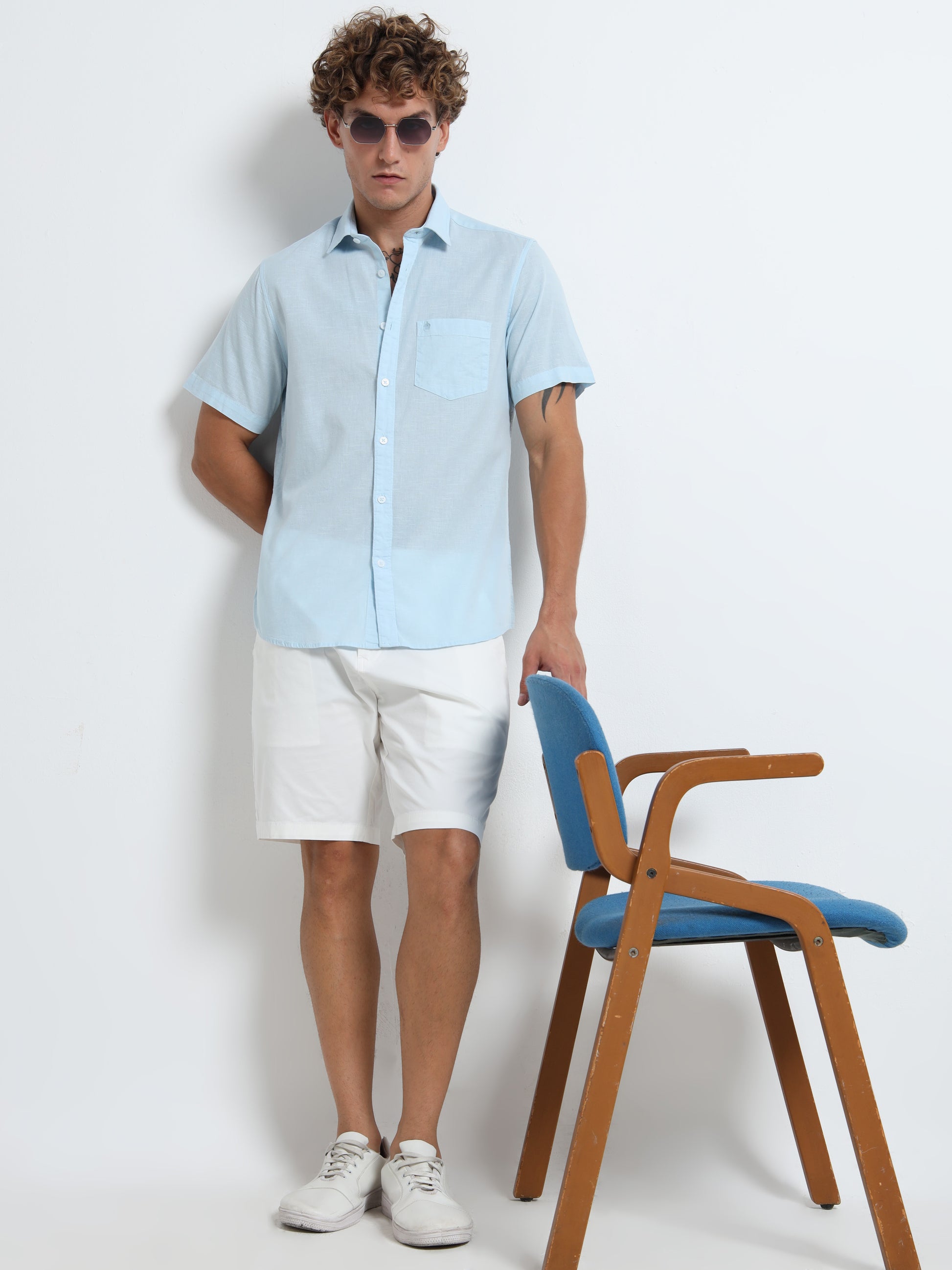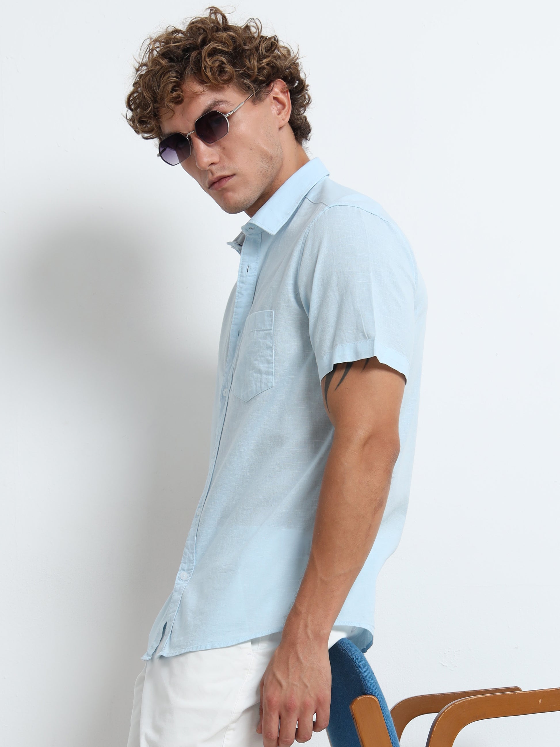 Blue half sleeves- Linen