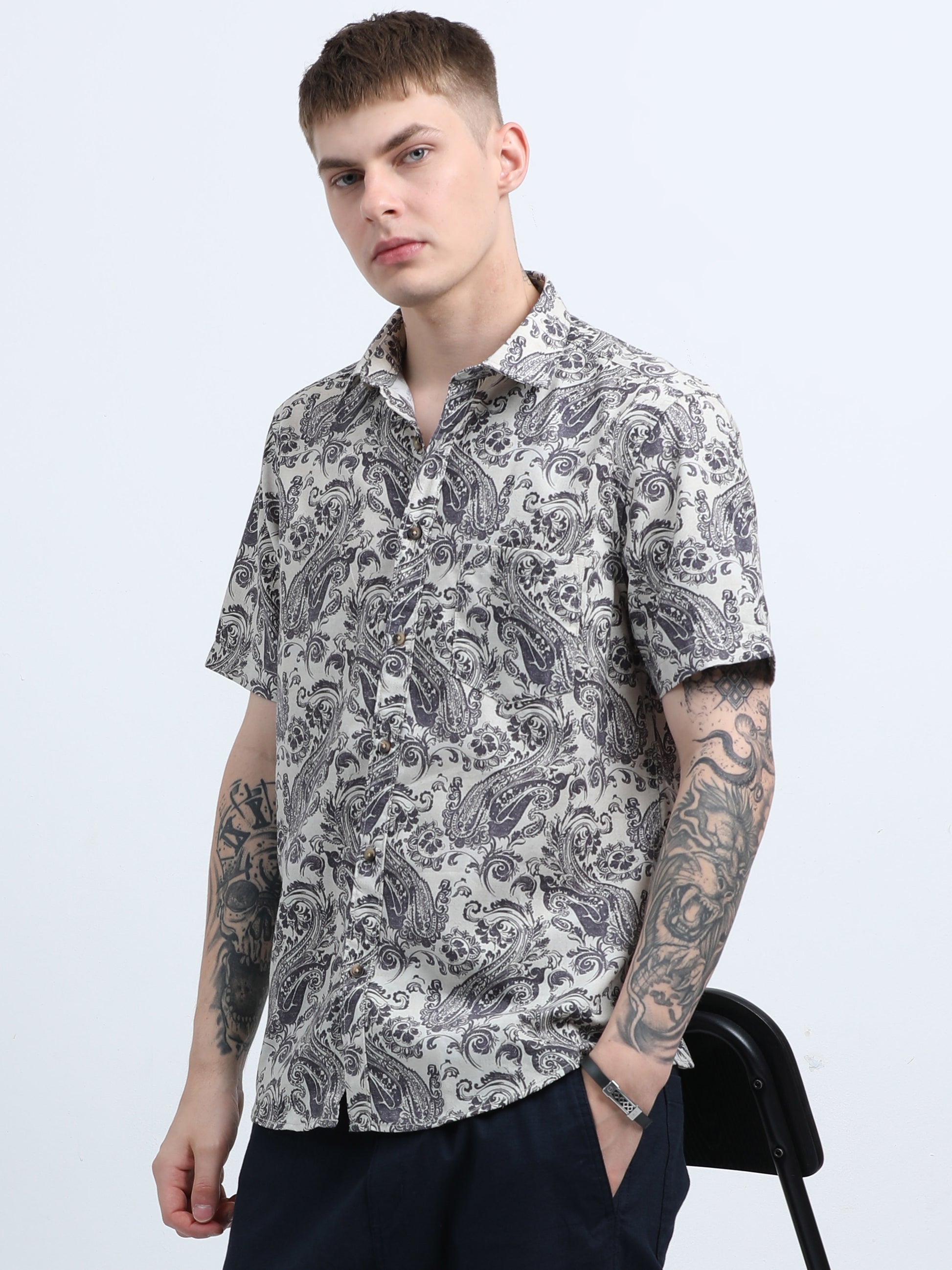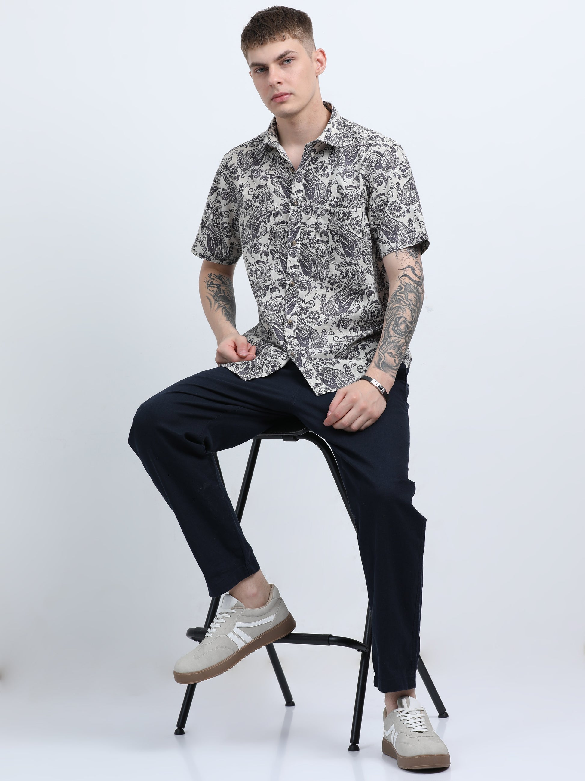 Martin Smith Men’s Regular Fit Linen Half Sleeves Casual Shirt