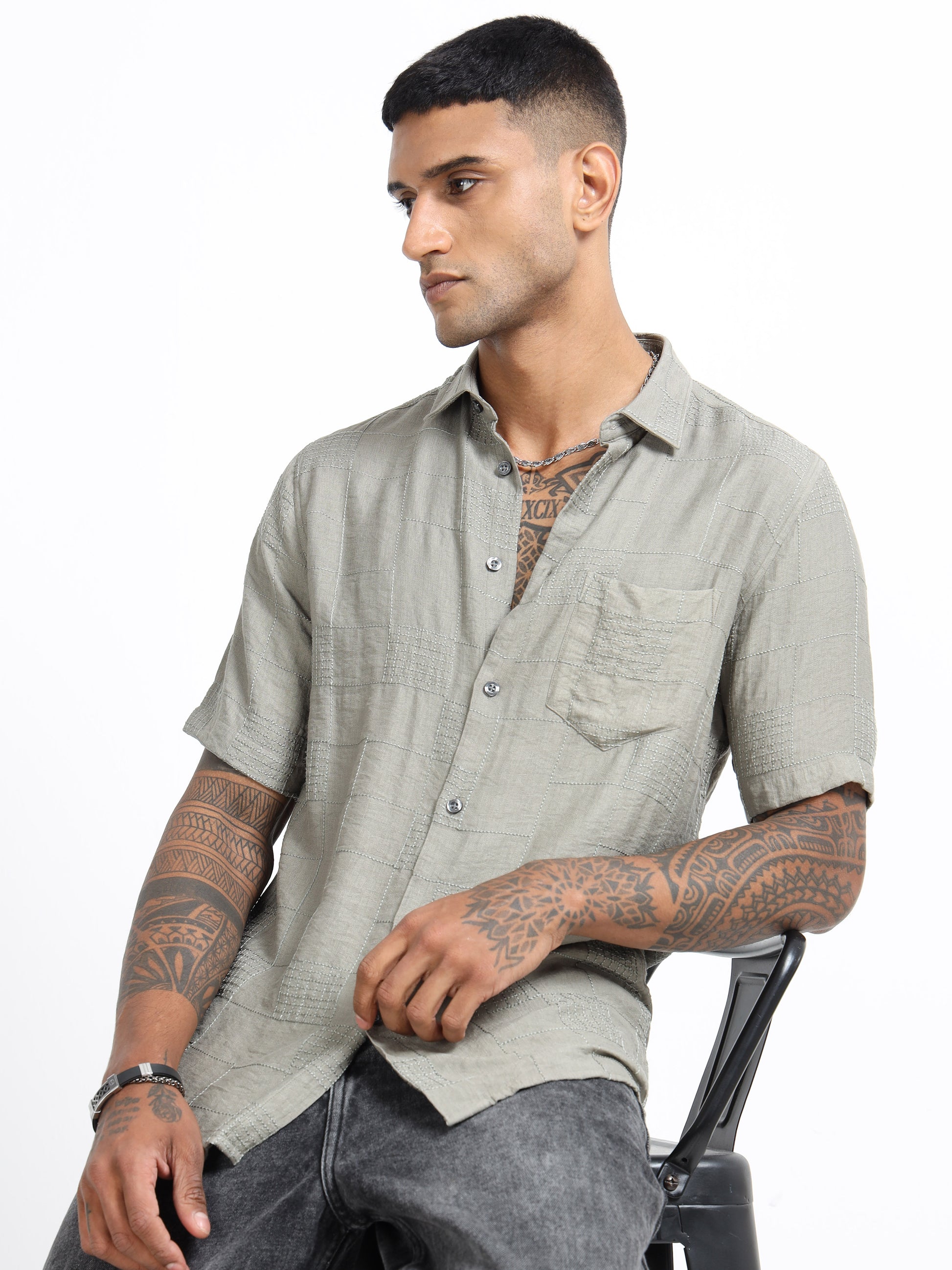 Elevate your everyday wardrobe with understated sophistication. This half-sleeve shirt combines refined embroidery detailing with a timeless, classic texture that speaks volumes without demanding attention. Perfect for those who appreciate quality craftsmanship and subtle elegance, it transitions seamlessly from casual outings to semi-formal occasions. The thoughtfully designed silhouette flatters effortlessly while the premium fabric ensures comfort throughout your day. Invest in a piece that embodies quiet luxury and enduring style.
