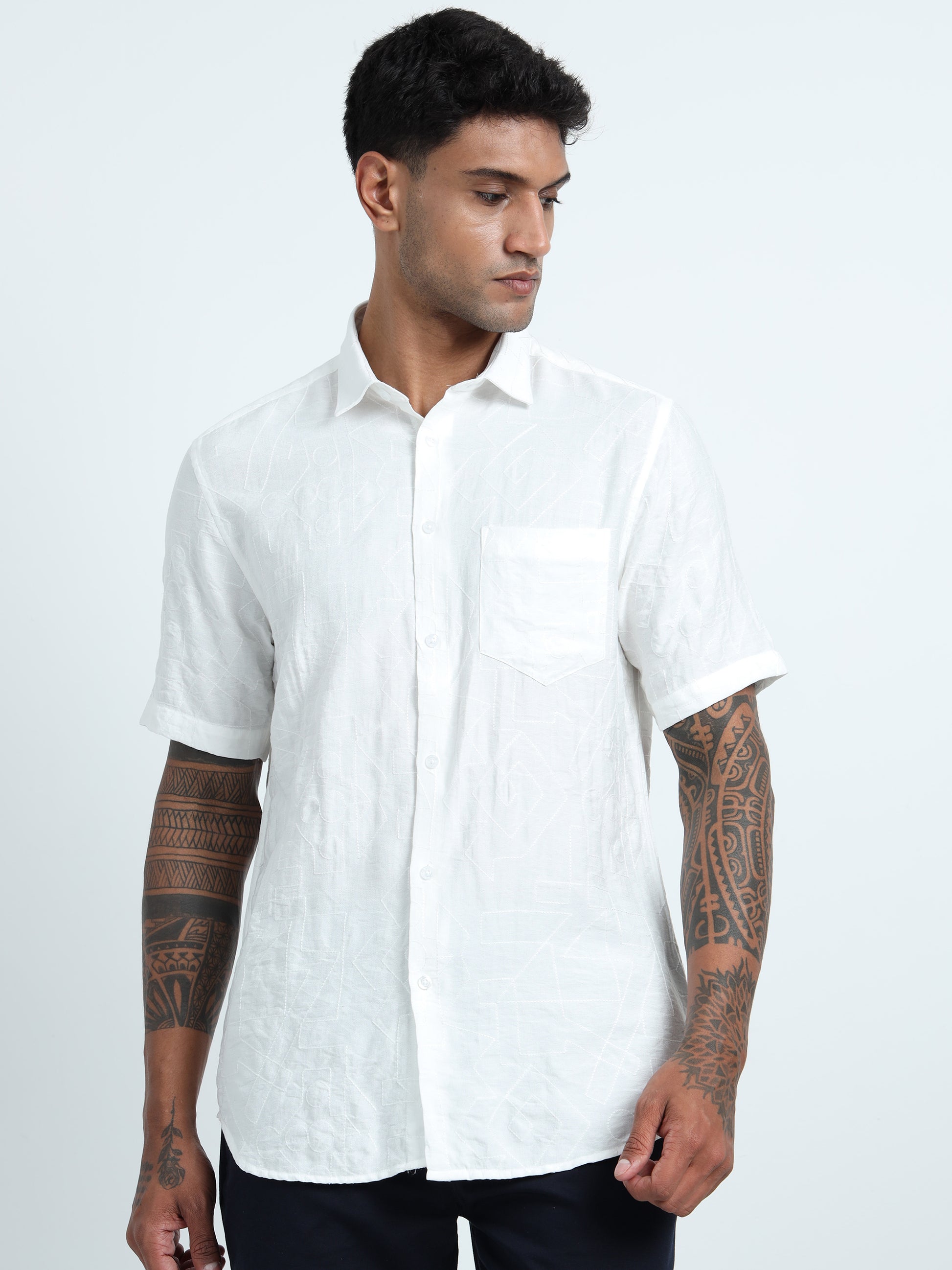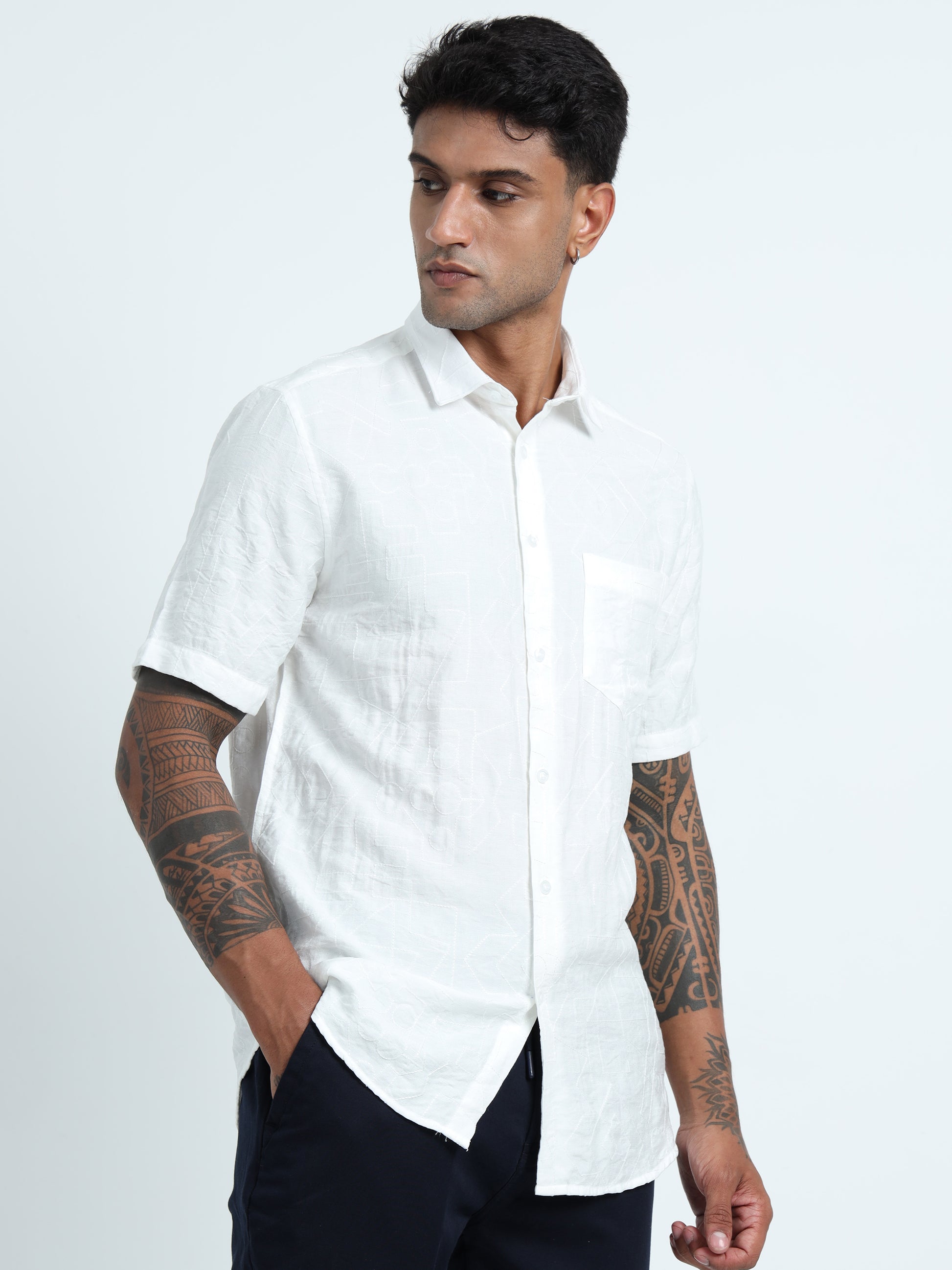 White Embroidery linen Shirt